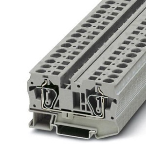 - Feed-through terminal block, nom. voltage: 1000 V, nominal current: 41 A, connection method: Spring-cage connection, number of connections: 2, cross section: 0.2 mm² – 10 mm², AWG: 24 – 8, width: 8.2 mm, color: gray, mounting type: NS 35/7,5, NS 35/15
